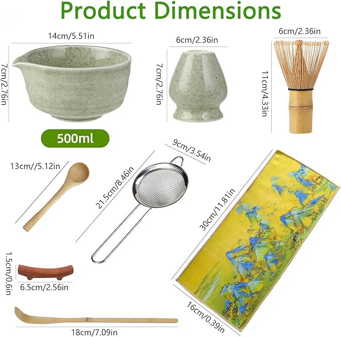 Matcha Set – 8-piece Matcha tea set for the tea ceremony Was $30 Now $25 Sale Traditional matcha set – enjoy an authentic Japanese tea ceremony: This 8-piece set includes a matcha bowl with pouring spout (500 ml), a bamboo whisk (chasen), a ceramic whisk holder, a bamboo spoon (chashaku), a ceramic spoon holder, a cotton cloth (chakin), a wooden spoon and a fine stainless steel strainer. A complete set for traditional matcha preparation – perfect for beginners and advanced enthusiasts alike. Quantity Enter an amount $ Add to Cart Add to Cart You may also like Previous Next Sale Moritz & Moritz VIDA 18-Piece Crockery Set 6 People, Ceramic Tableware Black / Beige, Dishwasher $150 Compare to $160 Sale Stoneware Dinnerware Set Ibiza 24-piece $89 Compare to $96 Sale BALTER Stainless steel kettle with temperature setting, 45°C – 100°C $60 Compare to $65